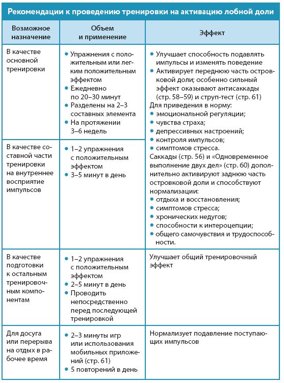 Рекомендации к проведению тренировки на активацию лобной доли