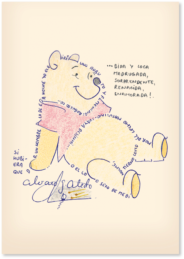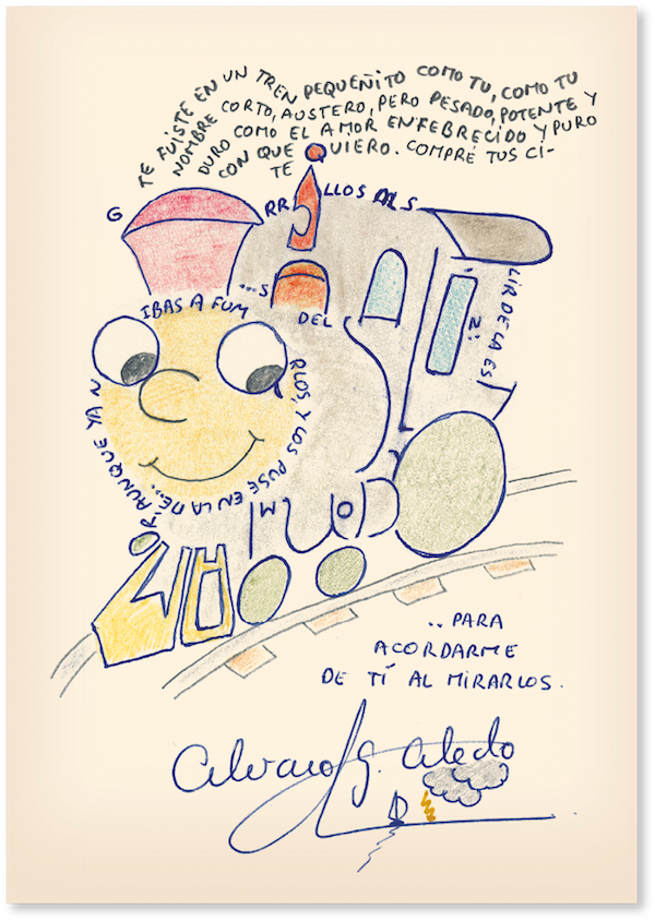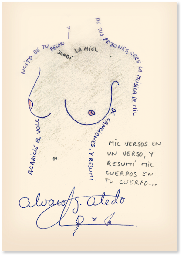 Indulgencia, mucha indulgencia es lo que tengo que pedir al lector. Porque estos dibupoemas abarcan un periodo de muchísimos años, casi toda una vida, e incluyen desde los amores ingenuos de la adolescencia hasta el amor a un hijo que se va del país y tienes que callar el dolor con un poema que además le transmita algo, pasando por el amor a una madre que ya se despide, a una niña que se hace mujer, y otros más. Por lo tanto muchos tipos de amor y expresados de formas diferentes. Y también porque he tenido que cambiar algunos detalles, formas, y la cronología de los versos, para que no se reconozcan las mujeres, las fechas o las situaciones que ahora, fuera de su contexto, podrían interpretarse mal y causar dolor a alguien por los malentendidos. Para que quede solo su valor literario y no sean el reflejo de una biografía, la mía, que prefiero que permanezca en el misterio, revueltos los aciertos y los errores, las cumbres del amor y sus pozos más hondos. Lo que tengo claro con la perspectiva del tiempo es que, aunque parezca contradictorio con la literalidad de algunos de los dibupoemas, las amé a todas.
