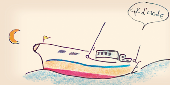 Al ir a cargar el agua resultó que los grifos estaban tan cerca del suelo que no cabía un bidón debajo. En el Corto Maltés no llevamos manguera, para ahorrar peso y espacio, y cargamos el bidón de agua con uno más pequeño en los grifos del pantalán o tomamos prestada alguna manguera de las que suele haber frente a otros barcos. En Cap d’Agde no vimos ninguna disponible y el marinero nos consiguió una. Por cierto hablaba castellano, como muchos por esta costa. Dimos la vuelta al gancho de tomar los rizos, pusimos el pabellón de cortesía francés en el obenque de estribor y continuamos nuestra ruta a las 12:30 h para una etapa intermedia, de unas 30 millas.