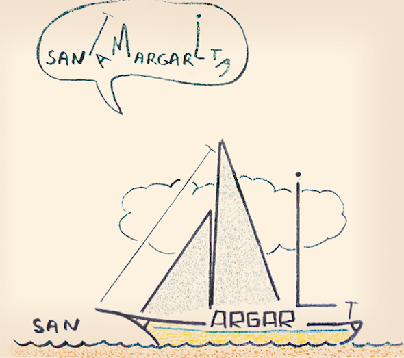 Nuestra idea inicial era ir a San Honorato, la de más al Sur y más pequeña, que tiene un puerto y pasar allí la noche porque en Santa Margarita no hay muelle para visitantes. Pero nos habían dicho en la capitanía de Cannes que ya no tiene un metro de calado como afirma la Guía Imray sino 80 cm, y esa diferencia fue suficiente para decidirnos. El Corto Maltés cala 70 cm con la orza subida y cualquier olita nos haría chocar con el fondo. Pero el cambio fue providencial, porque era sábado y todo Cannes estaba en el estrecho entre Santa Margarita y San Honorato y aquello parecía El Puntal de Santander un domingo de verano. El problema es que pensábamos que Santa Margarita no tenía pantalanes accesibles y por tanto tendríamos que fondear y llegar a la isla a nado. A pesar de la hora un poco tardía para nuestras costumbres llegamos los primeros y estuvimos dando unas vueltas por la costa Norte de la isla investigando la profundidad de la zona y el tipo de fondo. Nos llevamos algún pequeño susto, de los de tener que dar marcha atrás precipitadamente, pues de repente aparecían bajíos de rocas y nos parecía que íbamos a chocar. Además la mayor parte del fondo era de algas, que son un mal tenedero para el ancla, lo que te garantiza una noche de no pegar ojo pues cualquier cambio de viento puede hacerte garrear. Creo recordar que estuvimos incluso pensando prescindir de esta escala y seguir ese mismo día para Mónaco. Pero vimos fondeado un velero francés con el tambucho abierto y nos acercamos a preguntar, que suele ser lo mejor. Al llamarle, emergió por el tambucho el patrón del velero cepillándose los dientes. Debía haber dormido allí y conocer el sitio. Y en efecto nos dijo que el pantalán de las vedettes que desembarcan a los turistas, por su lado Este (43º 31,36’ N; 7º 2,30’ E) era de acceso libre para estancias de hasta 6 horas, y que calaba más de un metro y medio. Nos dirigimos allí y efectivamente lo presidía un cartel especificando que se podía amarrar 6 horas de cada 24. Nos colocamos proa al pantalán, que era de hormigón y fijo al fondo en vez de flotante, con calado de unos dos metros y fondo de algas.