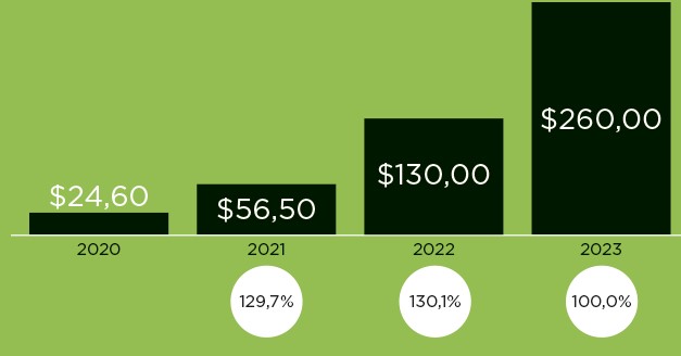 По данным оценки рынка США, сделанной Digital Commerce 360[16], годовой объем продаж с помощью B2B-маркетплейсов удваивается каждый год (рис. 1.1).