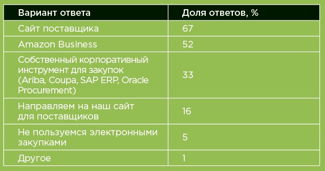 В рамках того же исследования был проведен опрос специалистов по закупкам, какими они пользуются способами заказа. Допускался выбор нескольких вариантов. Ответы в таблице (рис. 1.2).