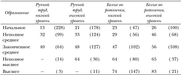 Эти таблицы показывают, что, хотя более высокий профессиональный статус в рамках каждого образовательного уровня, похоже, способствует большей терпимости, увеличение толерантности, связанное с более высоким образовательным уровнем, значительнее, нежели то, что связано с более высоким профессиональным уровнем, если другие факторы остаются постоянными[165]. Недостаточное образование и низкое должностное или профессиональное положение, конечно же, тесно связаны между собой, и оба эти фактора образуют часть комплекса, приводящего к низкому статусу, который, в свою очередь, связан с недостатком или даже полным отсутствием толерантности[166].