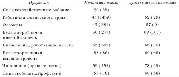 Те же самые социальные условия ассоциируются и с авторитаризмом среднего класса. В числе профессиональных групп, которые проявили наибольшую склонность к поддержке фашистской и других экстремистских идеологий среднего класса, были помимо фермеров и крестьян мелкие бизнесмены из небольших провинциальных общин – иными словами, все это группы, которые тоже изолированы от «космополитической» культуры, а по уровню образовательных достижений находятся намного ниже любой другой группы, отличной от работников физического труда[176].