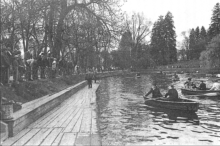 Seit vielen Generationen war es ein Studentenspaß in Graz gewesen, ein Ruderboot vom Hilmteich zu nehmen und dieses an der Uni vorbei in das Stadtzentrum zu tragen. Dort wurde es am Eisernen Tor in den Brunnen gesetzt und dann wurde gerudert. Das war deshalb möglich, weil die Polizei weniger Streifenwagen hatte. Das Boot wurde immer in einer Gruppe, wie in einer Prozession, getragen. Wurde man dabei von der Polizei überrascht, musste man das Boot fallen lassen und flüchten. Die Eingefangenen wurden unbarmherzig je nach Verhalten zu 24 oder 48 Stunden Haft verknackt. Es war aber Pflicht der Kommilitonen, im Gefängnis zu erscheinen und die armen Häftlinge mit Anatomiebüchern und mit einer Jause zu versorgen.