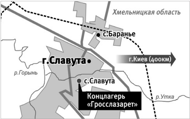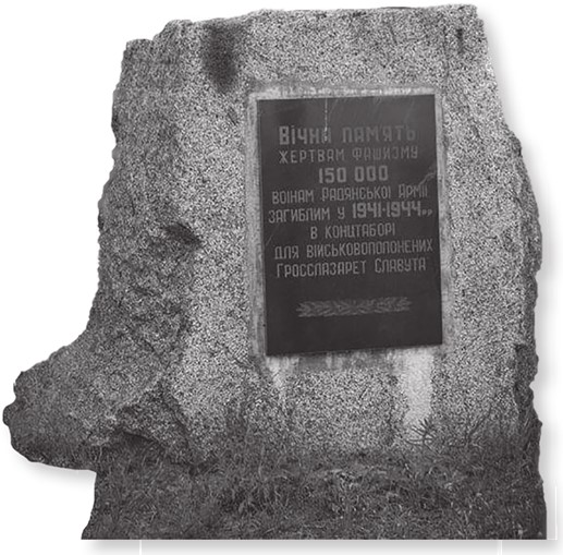 «Вечная память жертвам фашизма 150 000 воинам Советской Армии, погибшим в 1941–1944 гг. в концлагере для военнопленных Гросслазарет "Славута"»