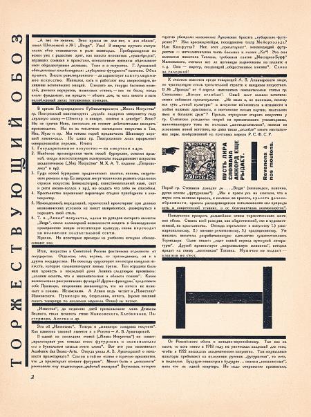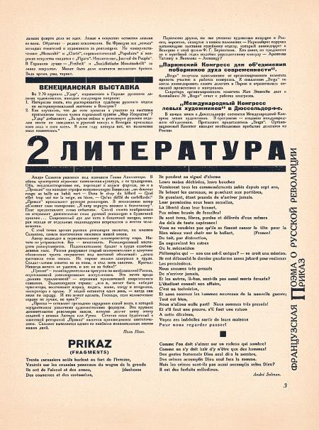 – один из признаков начинающегося обмена опытами, достижениями, вещами между молодыми мастерами России и Запада. Семь лет отъединенного бытия показали, что общность заданий и путей искусства различных стран не случайность, не догма, не мода, но неизбежное свойство возмужалости человечества. Искусство ныне ИНТЕРНАЦИОНАЛЬНО, при всей локальности частных симптомов и черт. Между Россией, пережившей величайшую Революцию, и Западом, с его томительным послевоенным понедельником, минуя разность психологии, быта и экономики, строители нового мастерства кладут верный скреп