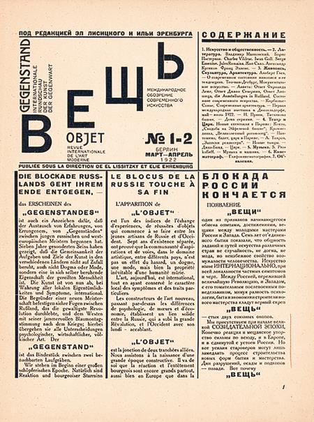 Эль Лисицкий. Журнал «Вещь». 1922. № 1–2.