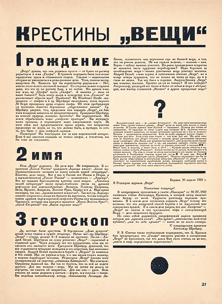 Блокада России кончается[39] «Вещь». 1922. № 1–2. С. 1–4