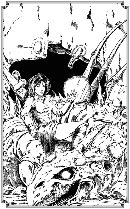 В пещере ненадолго замолчали, видимо, изучали сомнительного визитера на предмет возможных признаков заразы. Но потом в пещере бряцнули кости, что-то снова зашуршало, а затем из темноты медленно выдвинулся огромный драконий череп. За ним проступили очертания таких же гигантских ребер, мелькнули и пропали напрочь лишенные плоти костяные крылья, а по потолку чиркнул кончик такого же костяного хвоста.