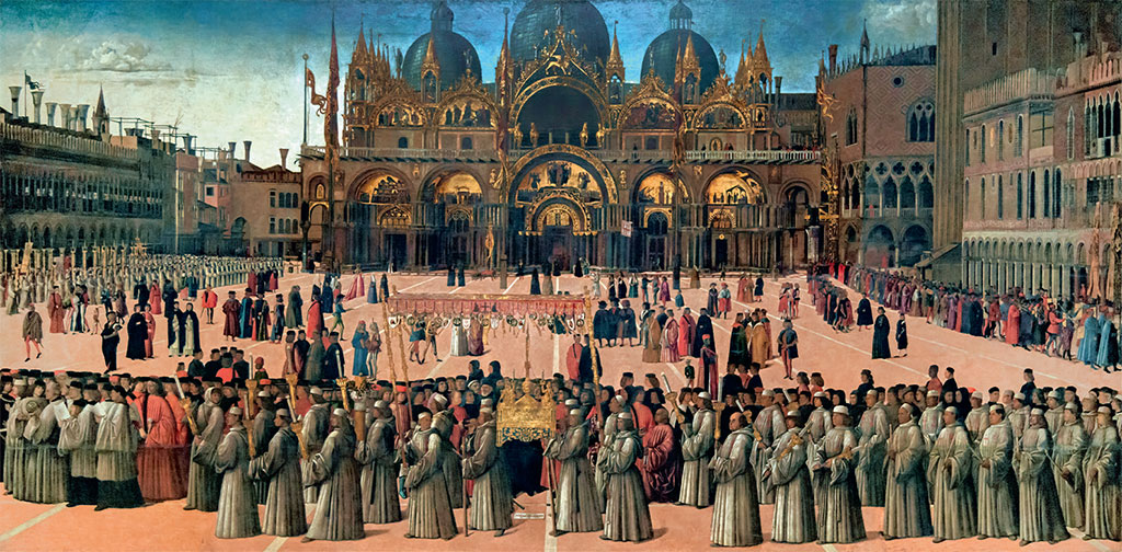 Процессия с реликвией Св. Креста на площади Св. Марка в Венеции. Картина Джентиле Беллини. 1496