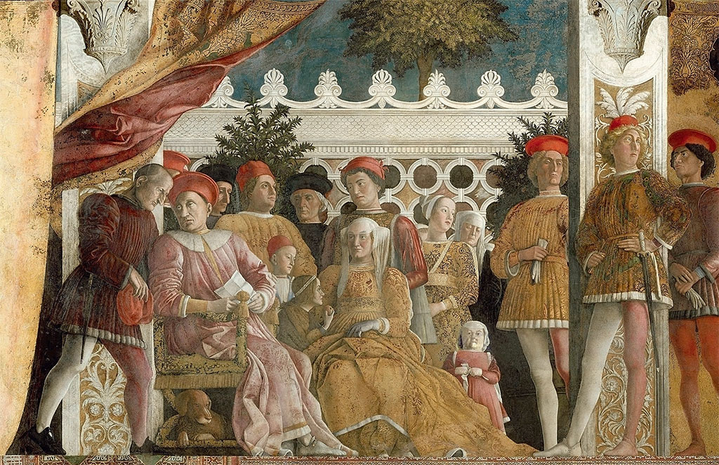 Двор герцога Гонзага. Фрагмент фрески Андреа Мантеньи в Камере дельи Спози замка Сан-Джорджо в Мантуе. Между 1465 и 1474