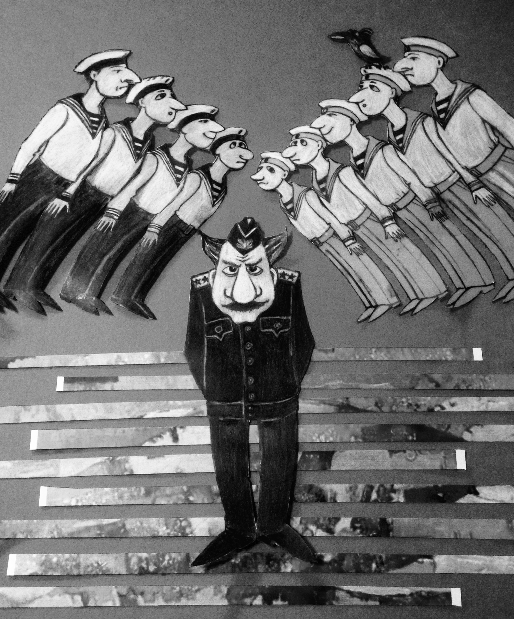 Даже на расстоянии чувствуется, насколько ему тяжело сегодня утром. Он, как всегда, небрит и хмур. Ему очень мешает яркое освещение ламп дневного света. Он щурится и недовольно морщится. Ведь, как назло, именно та часть мира, которою он видит с высоты своего, почти двухметрового роста, в это утро наиболее недружелюбна и невыносимо раздражающа. Да еще эта мичманская пилотка! Будто железными клещами сдавила его череп, вызывая нестерпимую боль где-то глубоко, между полушариями. Впрочем, сегодня утром боль была бы и без пилотки, но с пилоткой, особенно…