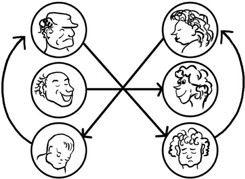 В каждом из нас живут как бы три человека, которые часто не ладят друг с другом. Когда люди находятся вместе, рано или поздно они начинают общаться. Если А. обращается к Б., он посылает ему коммуникативный стимул. Б. ему отвечает. Это коммуникативный ответ (рис. 3).