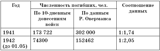 Во-первых, в книге «Человеческий материал. Немецкие солдаты на Восточном фронте» немецкий исследователь Кристоф Расс утверждает, что, «…регулярная и непрерывная система подсчета и регистрации потерь личного состава выработалась в сухопутных войсках лишь после поражения зимой 1941–1942 гг.…»