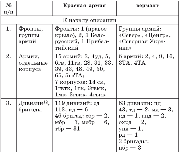 Характеристика боевого состава и численности войск в операции приведены в табл. 1.7. [12]
