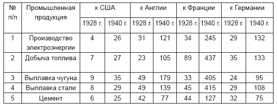 Таблица 1.2. Объем промышленного производства в СССР по отношению к развитым западным странам (в%) после индустриализации