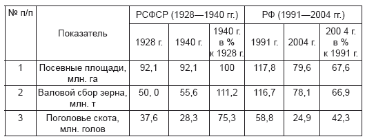 Таблица 1.5. Сельское хозяйство в РСФСР (1928–1940 гг.) и РФ (1991–2004 гг.)