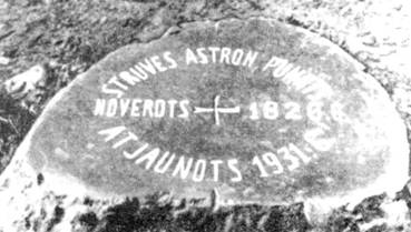 Плита на месте астрономического пункта Якобштадт дуги Струве.