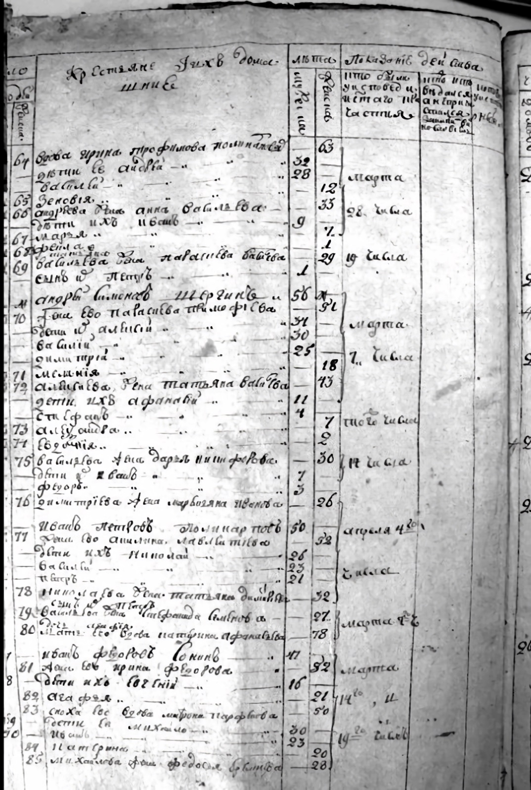 В чудом сохранившихся после пожара церковных росписях Покровской церкви в Барневской слободе в 1802 году исповедовался и причащался Шергин Андрей ‒ сын Симона ‒ в возрасте 56 лет. А с ним супруга его Параскева Тимофеевна и дети: сыновья Алексей (34 года), Дмитрий (25 лет) да дочь Меланья (18 лет). Есть в этом семейном списке еще один сын ‒ Василий (30-ти лет). Вот именно от него и получила продолжение наша генеалогическая история: родился у него сын Федор, а у Федора ‒ Спиридон.