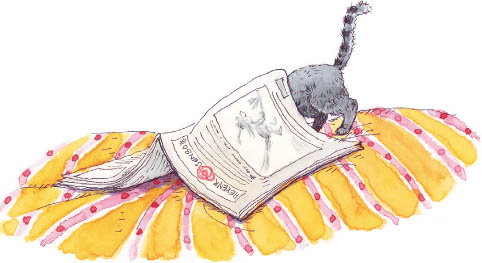 Floras Mutter stand vor dem Bett und schwenkte den Hexenrosenboten in der Luft. Dann legte sie die Zeitung auf die Bettdecke. Kringel bohrte sofort seinen flauschigen Kopf unter das raschelnde Papier und versuchte darunterzukriechen. Er liebte es, Verstecken zu spielen.