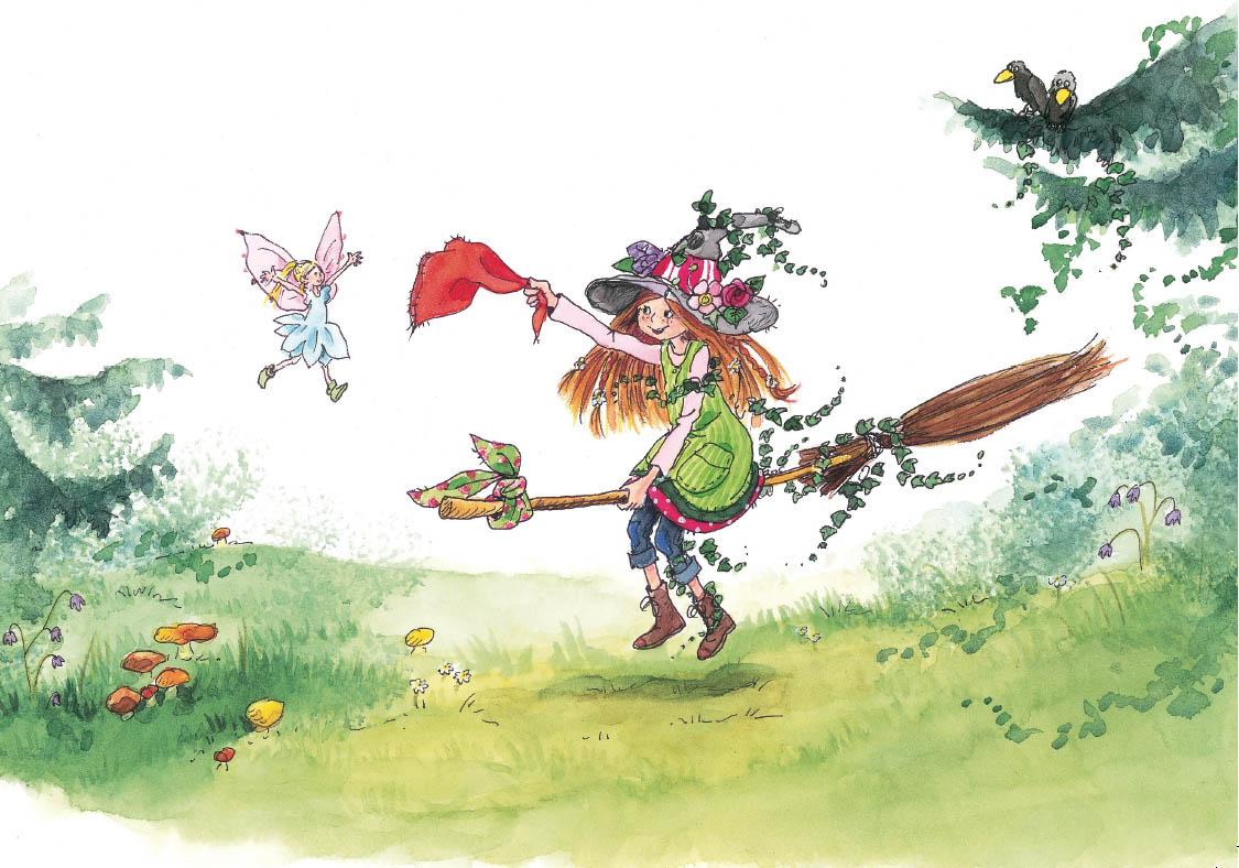 Aber sie dachte gar nicht daran, langsamer zu fliegen. Geschickt lenkte sie ihren Besen zwischen all den Bäumen hindurch. Einmal schnalzte ihr ein Tannenzweig über die Wange.