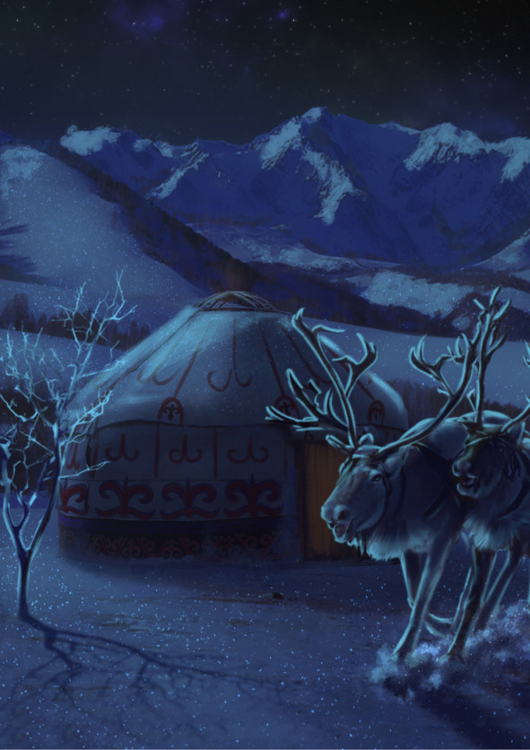 Широка безграничная доброта женской душиПодобно необъятным просторам Земли-матушки.Прекрасны чистые, бездонные очи женщины,Словно хрустальные озера её.Плодородна земля, и во плоти своейКак женщина родящая.Земля – женщина – мать.Ночь опутала снежные зубья Алтайских гор и застыла, будто черный волос на белом гребне. Густая морозная хмарь, витающая над острыми зубцами плотным облаком, придавленная небом, сразу же мутным парящим маревом поплыла вниз, расползаясь над всей прилегающей округой, спрятав под своим рыхлым белёсым покровом войлочную юрту, которую в колышущейся туманной пелене теперь можно было распознать только по сильному женскому плачу, доносившемуся изнутри.