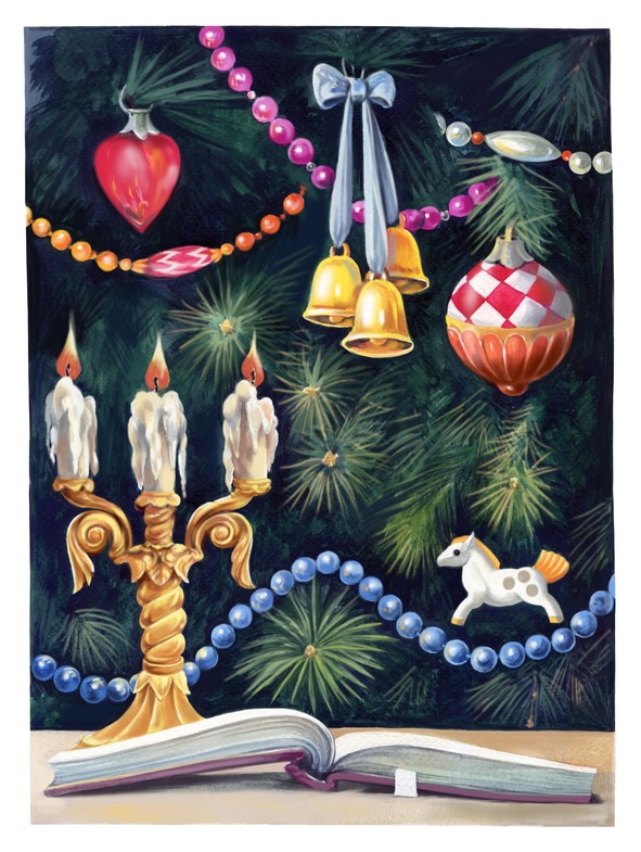В пунцовых отблесках пламени новогодняя ёлочка казалась ещё праздничней. Весело подмигивали цветные лампочки гирлянд, переливались подвешенные на ниточках шарики, витые сосульки, игрушечные куколки… А на верхушке сияла, отбрасывая по сторонам золотые гранёные лучи, звезда.