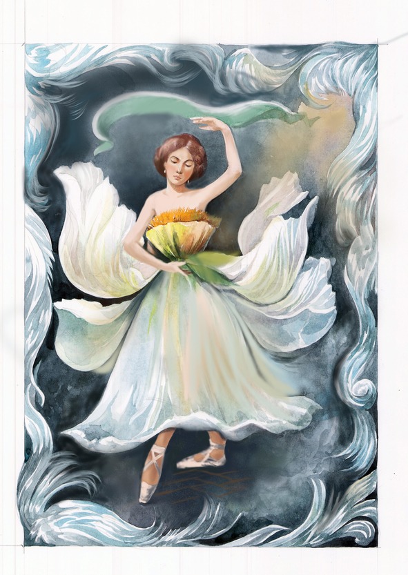 Но вмиг замрёт – и резкий ввысь бросок! Летит и распускается цветок – прекрасный, белый, невесомый; закружится в крахмальном фуэте оборок платья, тугой корсет сжимает грудь её в объятья, и ленты вокруг тоненьких лодыжек – виток.