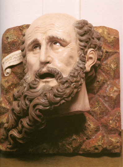 La fama de Felipe de Espinabete ha estado cimentada por el modelo de cabeza de santo degollado en el que se especializó, y materializó, entre otras, en las de san Pablo (1760) y san Juan Bautista (1774)[313], conservada la primera en el Museo Nacional de Escultura (Fig.29) y la segunda en la iglesia parroquial de Santibáñez del Val (Burgos). El tipo responde a la predilección que hubo durante el Barroco por el tema de las cabezas degolladas; la vía del dolor estaba muy impuesta, y ese sangriento corte y la expresión dolorosa del rostro era sin duda un atractivo para mover a los fieles hacia la piedad y compasión. Martín González ha señalado en varias ocasiones que el escultor debió quedar sorprendido por la cabeza degollada de san Pablo, de Villabrille y Ron, que se hallaba en el convento vallisoletano de la misma titularidad, y hoy se expone en el Museo Nacional de Escultura[314]. Un rasgo característico de todas las testas que realizó está en el hecho de llevar incorporada una cartela o papel adherido con su firma. Otra serie de obras de este mismo tipo podemos añadir con la cabeza de san Juan Bautista procedente de la iglesia vallisoletana de San Andrés, de 1773[315], o la que se conserva de este profeta en el monasterio de la Santa Espina, de Valladolid, fechada en 1779[316], un año antes que las cabezas de san Pablo y el Bautista del convento vallisoletano de Las Lauras, procedentes tal vez de una donación, pues en esta casa profesó la hija de Espinabete, llamada Narcisa[317]; el cierre de este cenobio hace ya algunos años deparó la dispersión de su patrimonio, razón por la cual la citada cabeza de san Pablo se conserva actualmente en el convento de madres dominicas de San Pedro, en Mayorga de Campos[318].