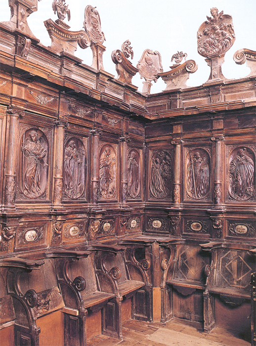 Fig. 30. Felipe de Espinabete, tableros de la sillería coral realizada para el monasterio de La Espina en Valladolid, hoy en la iglesia parroquial de San Miguel, Villavendimio (Zamora). 1766.