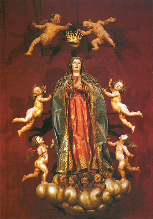 Germán Ramallo analiza e interpreta la catedral como guía mental y espiritual de la Europa barroca católica, resaltando, entre otros aspectos, la potenciación de las devociones que se impusieron tras finalizar el Concilio de Trento[38]. En esta línea se sitúan obras como la imagen de la Asunción que el toresano Esteban de Rueda contrató en 1624 para la catedral nueva de Salamanca (Fig.3)[39], o la actividad que el escultor Mariano Salvatierra desarrolla en la catedral de Toledo, alumbrando ya un cambio de rumbo estético[40].