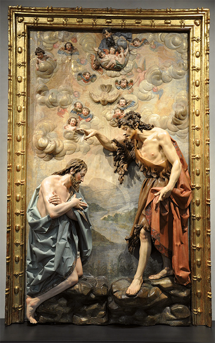 Fig. 1. Gregorio Fernández, Bautismo de Cristo, 1624. Valladolid, Museo Nacional de escultura. Relieve procedente de la iglesia del convento vallisoletano de Ntra. Sra. del Consuelo de Carmelitas Descalzos.