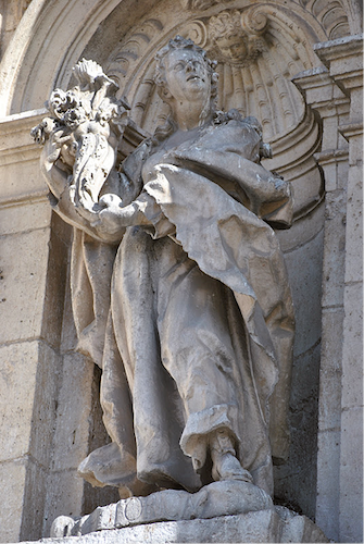 Fig. 26. Narciso y Diego Tomé, La Retórica, ejecutada a partir de 1716. Valladolid, fachada de la Universidad.