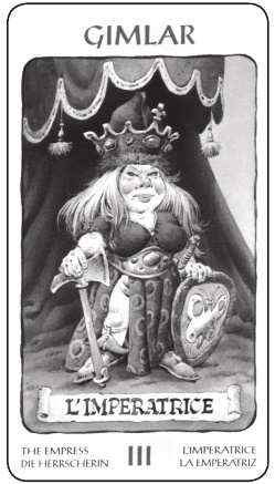По-прежнему Гимлар остается «на высоте», но поддерживает ее на этой позиции какая-то искусственная ситуация, поскольку роскошный шатер больше не защищает, а скорее, и служит той самой опорой, которая способствует высокому положению Императрицы. Перевернувшаяся Большая Императорская Корона, символ власти, теперь продвигает Гимлар наверх. Но сама гномка не обладает настоящей властью, она лишь исполняет чужую волю: ее назначили повелевать, наделив некоторыми полномочиями.