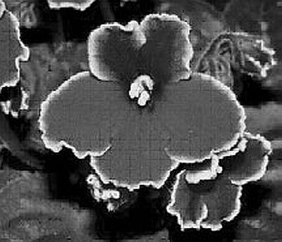 Каемчатые сенполии имеют кайму по краю каждого лепестка. На ширину и наличие каймы влияет температура содержания фиалок: в жарких условиях кайма может пропадать совсем, а при помещении растения в более прохладные условия кайма проявится снова.