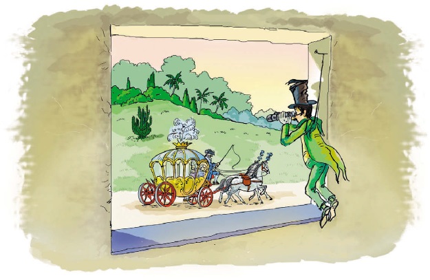 Графа подвесили на верёвочке к оконной раме, чтоб он наблюдал за дорогой с помощью бинокля донны Бенты.