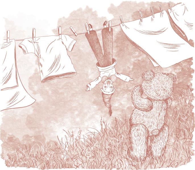Прыг увидел, что его за штаны прикрепили к верёвке большой прищепкой.