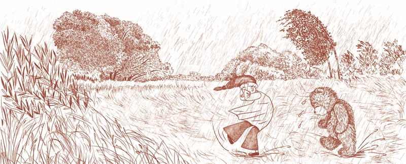 Чёрное небо между тем уже роняло первые капли. Мишутка последовал за другом, но ворчать не перестал.