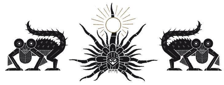 Географическое расположение Олачиля в окружении дикой природы тоже оказало огромное влияние на культуру этой страны – об этом можно судить по затейливому растительному орнаменту на Кольце с короной заката. Лаврентий говорит, что пироманты стараются жить на лоне природы, чтобы приблизиться к сущности творения[33], а именно к огню, который создал саму жизнь и лежит в основе всех школ магии. Возможно, Олачиль придерживался той же философии: в самом воздухе и в Саду Темных Корней, и в Королевском лесу витают синие магические частицы. Земля также порождает одушевленные растения, встречающиеся только в этом регионе и нигде больше – один из этих видов использовали в качестве садовников[34]. Однако тот факт, что эти люди-деревья – подобно каменным големам прошлого, но в отличие от местной фауны – продолжают работать, хотя королевство вокруг поглощает Бездна, говорит о том, что они неразумная рабочая сила, выращенная и выдрессированная подобно тягловым животным. В конце концов, чтобы стать ближе к природе, необязательно уравнивать ее с собой.