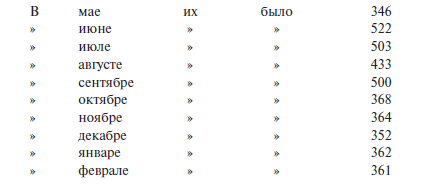 Лихоимство и склонение к разврату в сентябре и октябре превалируют над другими преступлениями, что объясняется обычными в это время платежами и сведением счетов.