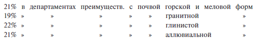 Из 25 департаментов с максимальной смертностью 7, т. е. 28 %, значительно превосходят среднюю цифру убийств, именно департаменты: Нижние Альпы, Верхняя Луара, Сена, Нижняя Сена, Устье Роны, Корсика и Вар. Средняя цифра этого рода преступлений достигает в них 28 %. Если откинуть последние два департамента, дающие особенно много убийств, то число последних понизится до 20 %.