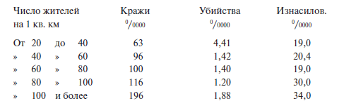 3. Рождаемость. Исследованиями об эмиграции разрешается в большей части своей другой вопрос, но совершенно различно для Италии и Франции. Известно, в частности, что число преступлений при одних и тех же плотностях населения должно зависеть от колебаний рождаемости, что кражи, например, возрастающие с плотностью населения, должны также увеличиваться с рождаемостью. Однако во Франции некоторые преступления, особенно изнасилования и убийства, умножаясь прямо пропорционально плотности населения, увеличиваются обратно рождаемости.