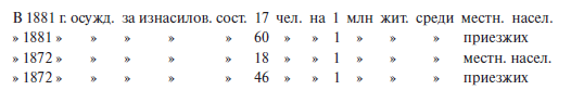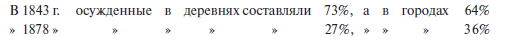 По их наблюдениям, число осужденных было больше среди деревенского населения, чем среди городского, в период с 1843 по 1856 год, но с 1863 года начинает преобладать в этом отношении последнее[17].