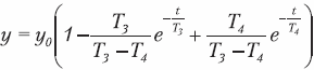 Полученное уравнение представляет сумму двух экспонент с постоянным временем Т3 и Т4.