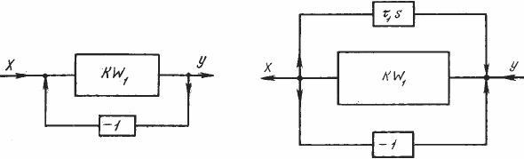 где КW1 – передаточная функция прямой цепи без скоростной обратной связи; t1S – передаточная функция скоростной обратной связи (дифференцирующее звено).
