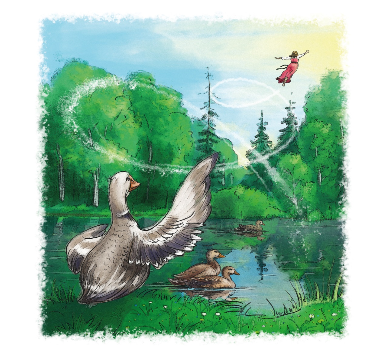 – Спасибо, утки, я скоро! – крикнуло Лето уткам уже из-за вооон того высокого облачка и растаяло в синем небе. А облачко осталось – за высокую сосну, зацепилось и осталось смотреть вслед Лету.