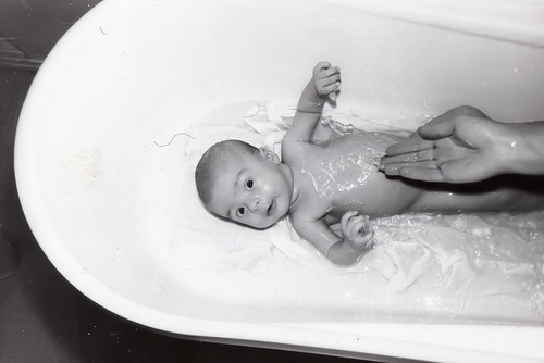 Когда старшая была младшей и единственной, мы купали её на кухне.