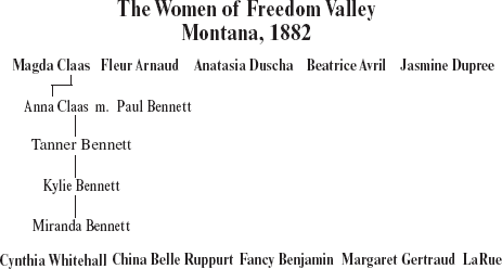 I have sisters, not of my blood, but of my heart. Women alone in a rough new land without protection, we formed a family. We settled in this valley bordered by high soaring mountains and traveled by men seeking wives. In this rough land, called Montana by the Indians, we’d come from all parts of the world. Some of us had thrown away hope, our lives ruled by men, yet it glimmered boldly when we decided to take this valley for our own and to call it “Freedom.”