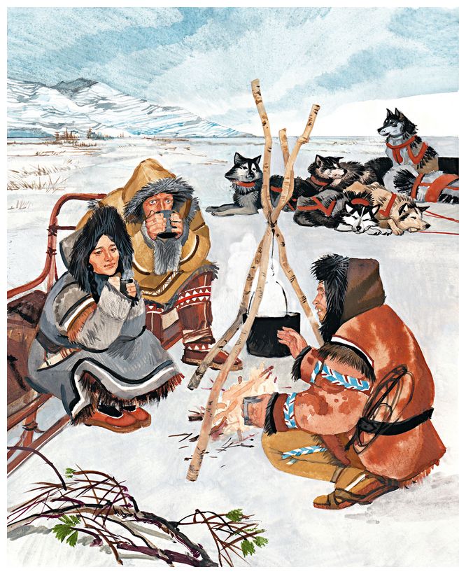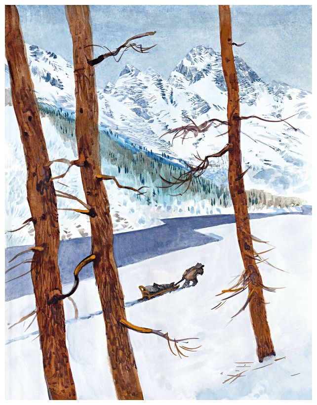 И уж точно нет труда тяжелее, чем прокладывать тропу. Ноги в огромных плетеных лыжах на каждом шагу проваливаются в сугробы по колено. Затем ногу нужно поднимать – строго вверх: малейшее отклонение, даже на дюйм, может привести к катастрофе, – до тех пор, пока лыжа не высвободится из снега полностью, и тогда – вперед и снова вниз, затем на пол-ярда перпендикулярно поверхности поднимают вторую ногу. Тот, кто делает такое впервые, даже чудом умудрившись не поставить ноги слишком близко друг к другу и не растянуться во весь рост на зыбкой тверди, рухнет в изнеможении, не преодолев и сотни ярдов. Тот, кому удастся ни разу за день не попасть под собачью упряжку, может с чистой совестью заползти в спальный мешок, преисполнившись гордости сверх всякой меры. А уж тому, кто выдержит на Великой Северной тропе двадцать ночевок, могут завидовать боги.